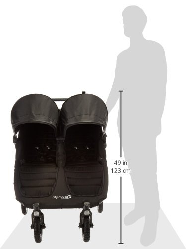 - The stroller has two seats that can handle two newborn baby seats or children up to 50 pounds